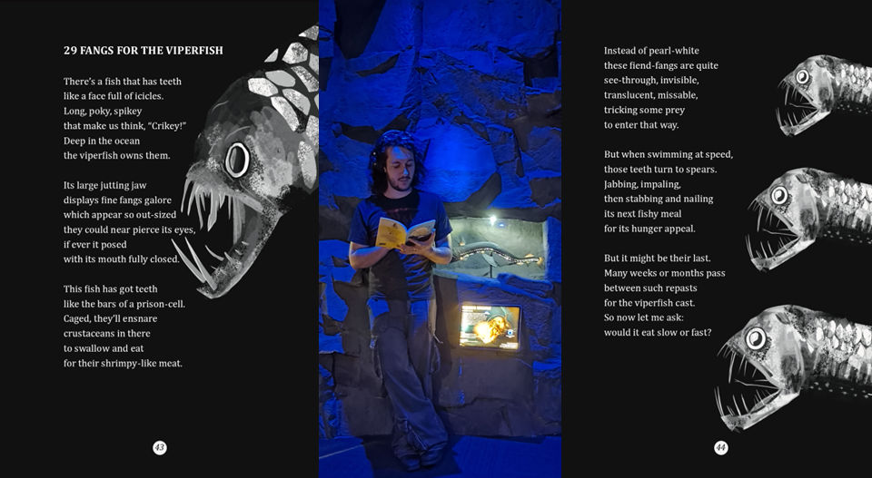 Elijah found a model of the weird and wonderful Viperfish at the aquarium. He admitted these silvery drawings had taken a long time to perfect, but had given him the greatest pleasure. Do you like their scarily sparkly toothy grins?